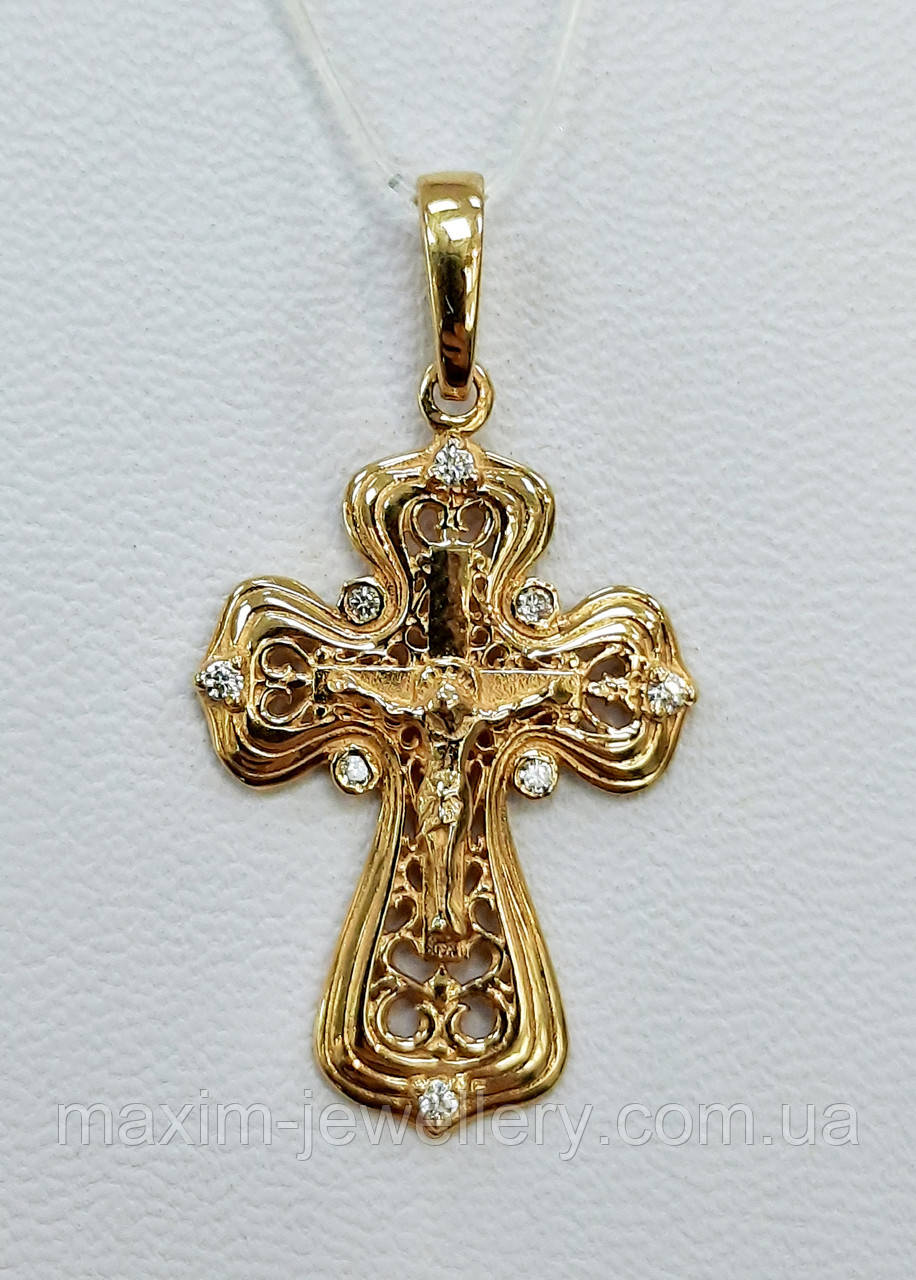 Натільний хрестик з червоного золота 585 проби з куб.цирконієм, виконаний у стриманому і строгому стилі.