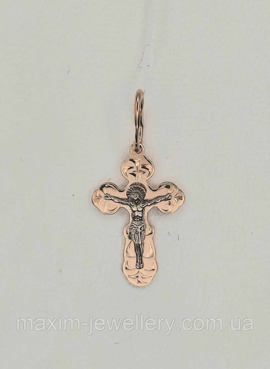 Натільний православний хрестик з червоного золота 585 проби без вставок, виконаний у стриманому і строгому стилі.