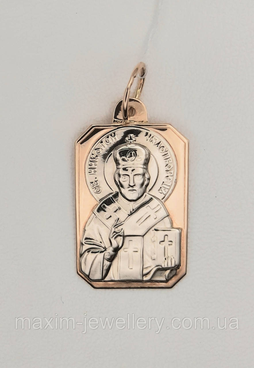 Підвіска - іконка "Святий Миколай Чудотворець" із золота 585 проби,